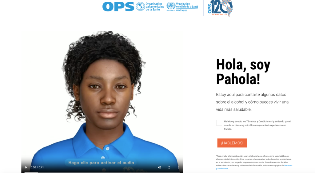 Pahola es la nueva especialista digital en salud y consumo de alcohol de la Organización Panamericana de la Salud. Está programada con la información e investigaciones más recientes y puede ayudarte a tomar decisiones más saludables relacionadas con tu consumo de alcohol.